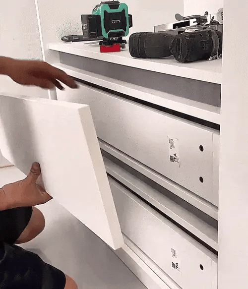 Der Schnellverriegelungsmechanismus der Zwinge ermöglicht Ihnen, die Fronten der Schubladen sofort präzise auszurichten —ohne Maßband oder Ratespiel. Einfach klicken, verriegeln und mit Vertrauen montieren.